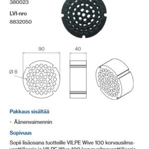 Värskeõhuklapi mürasummuti Vilpe Wive 100