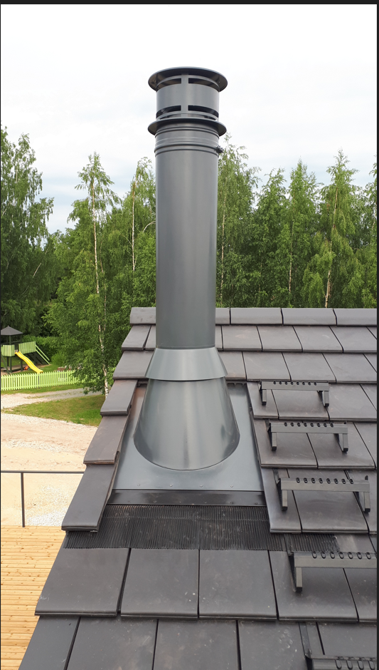 - Kõik kaldkatusega hooned, kus kasutatakse metallkorstent