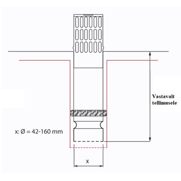 Ääriku läbimõõt ∅: Väljavoolutoru läbimõõt + 300 mm (min.)