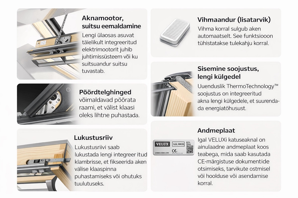 VELUX GGL suitsueemaldusaken on varustatud integreeritud suitsueemaldusmootoriga, kuid automaatseks tööks ja suitsuanduriga sidumiseks on vajalik eraldi juhtimissüsteem (KFX 210–214 või KFC 210/220). Juhtsüsteem võimaldab lisaks suitsueemaldusele ka erinevaid ventilatsiooni- ja mugavusfunktsioone.