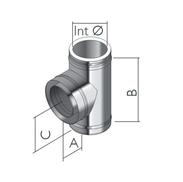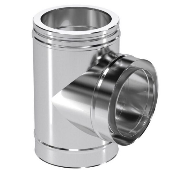 T-liiteelement 90° ICS lühike kasutatakse ühendamiseks horisontaalsest suitsutorust vertikaalse korstnasüsteemiga 90° nurga all. Haruosa saab kasutada ka tõmbestabilisaatori ühendamiseks.
